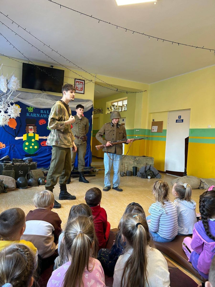 10.02.2025 r. uczniowie naszej szkoły wzięli udział w rekonstrukcji historycznej wydarzeń z okresu wojny. Uczestnicy obejrzeli repliki sprzętu bojowego, wyposażenie oraz mieli okazję ubrania się w mundury żołnierskie.