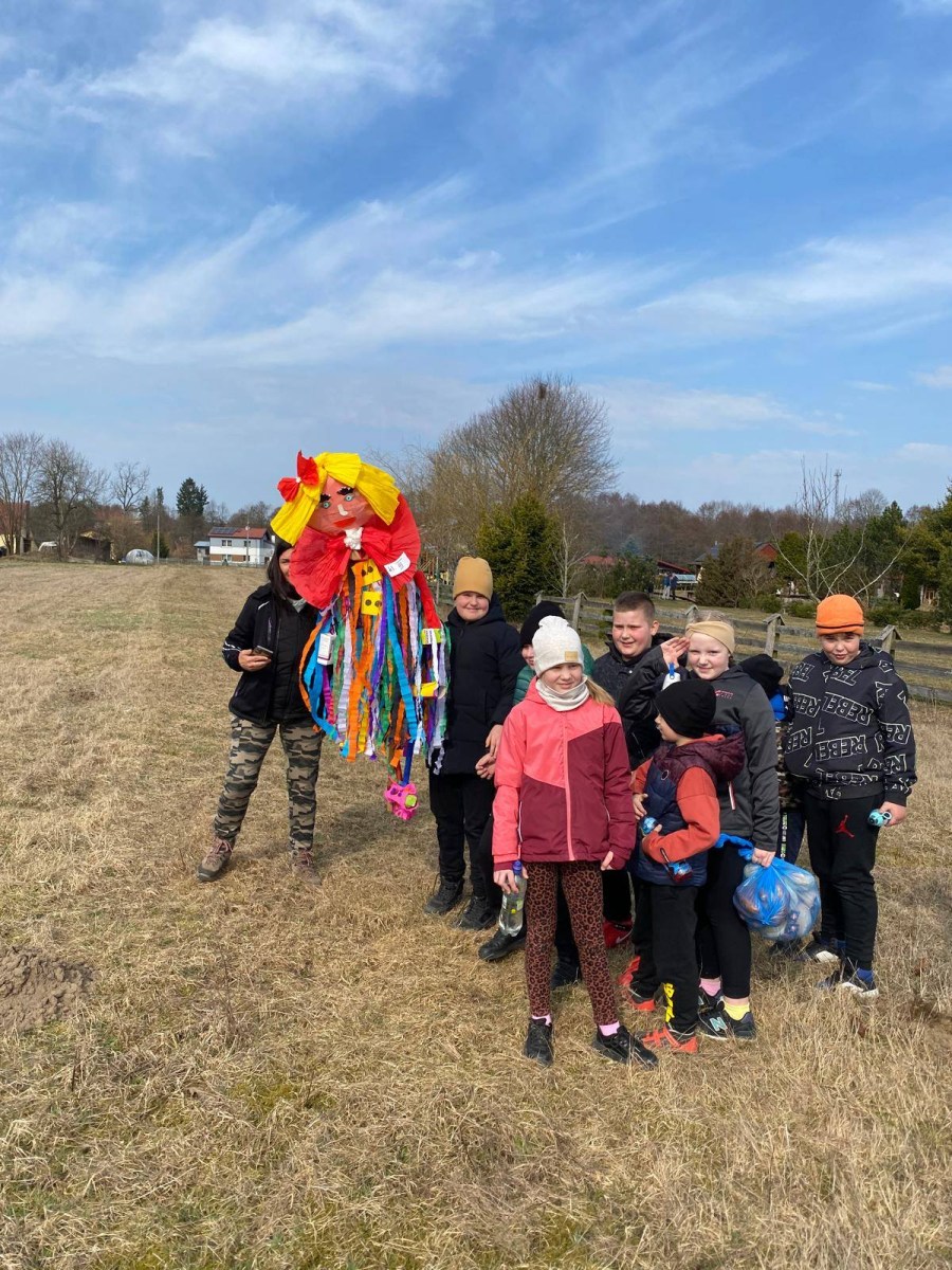 Tradycyjnie każda klasa przygotowuje eko – Marzannę🧛‍♀️, która jest symbolem pożegnania zimy i powitania wiosny.