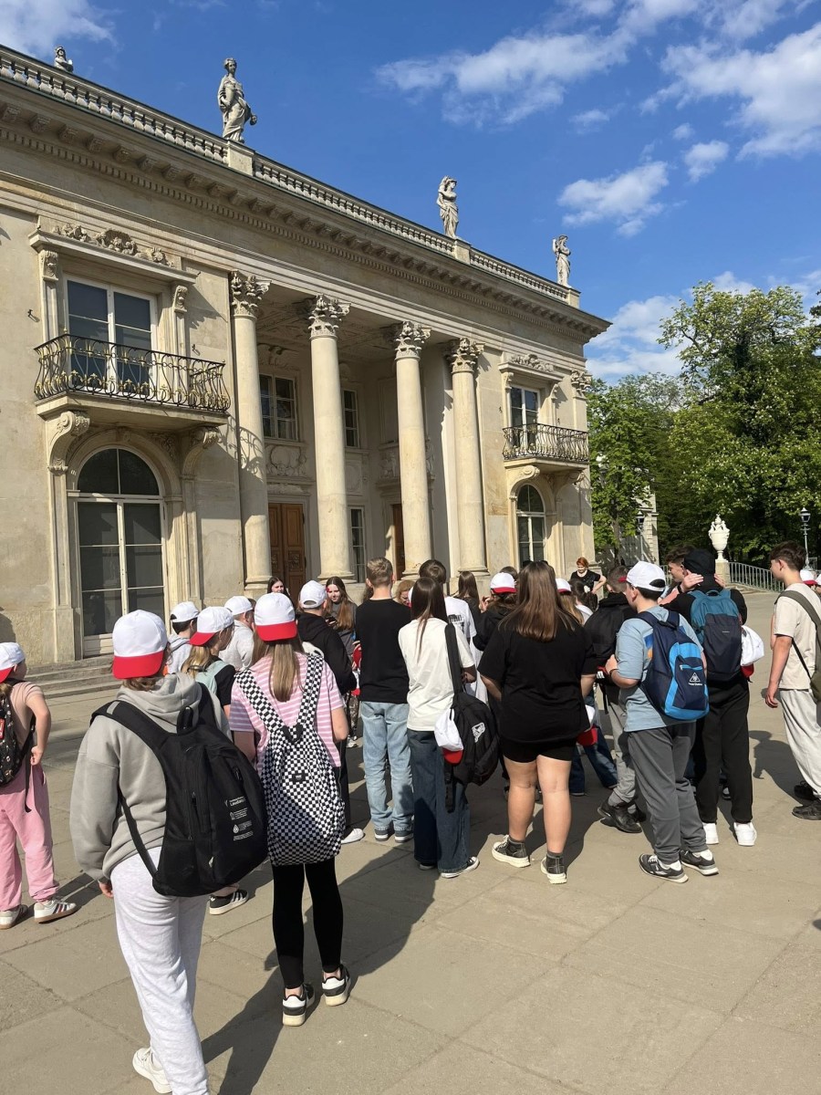 Po południu przenieśliśmy się do magicznych Łazienek Królewskich. Spacer pośród zieleni i pięknych zabytków z przewodnikiem był czystą przyjemnością. 🌳👑 Nie mogliśmy też pominąć wzruszającego pomnika Fryderyka Chopina 🎶 oraz oczywiście pomnika naszego patrona, Henryka Sienkiewicza! Nasi ósmoklasiści tradycyjnie potarli jego pomnik na szczęście! ✨