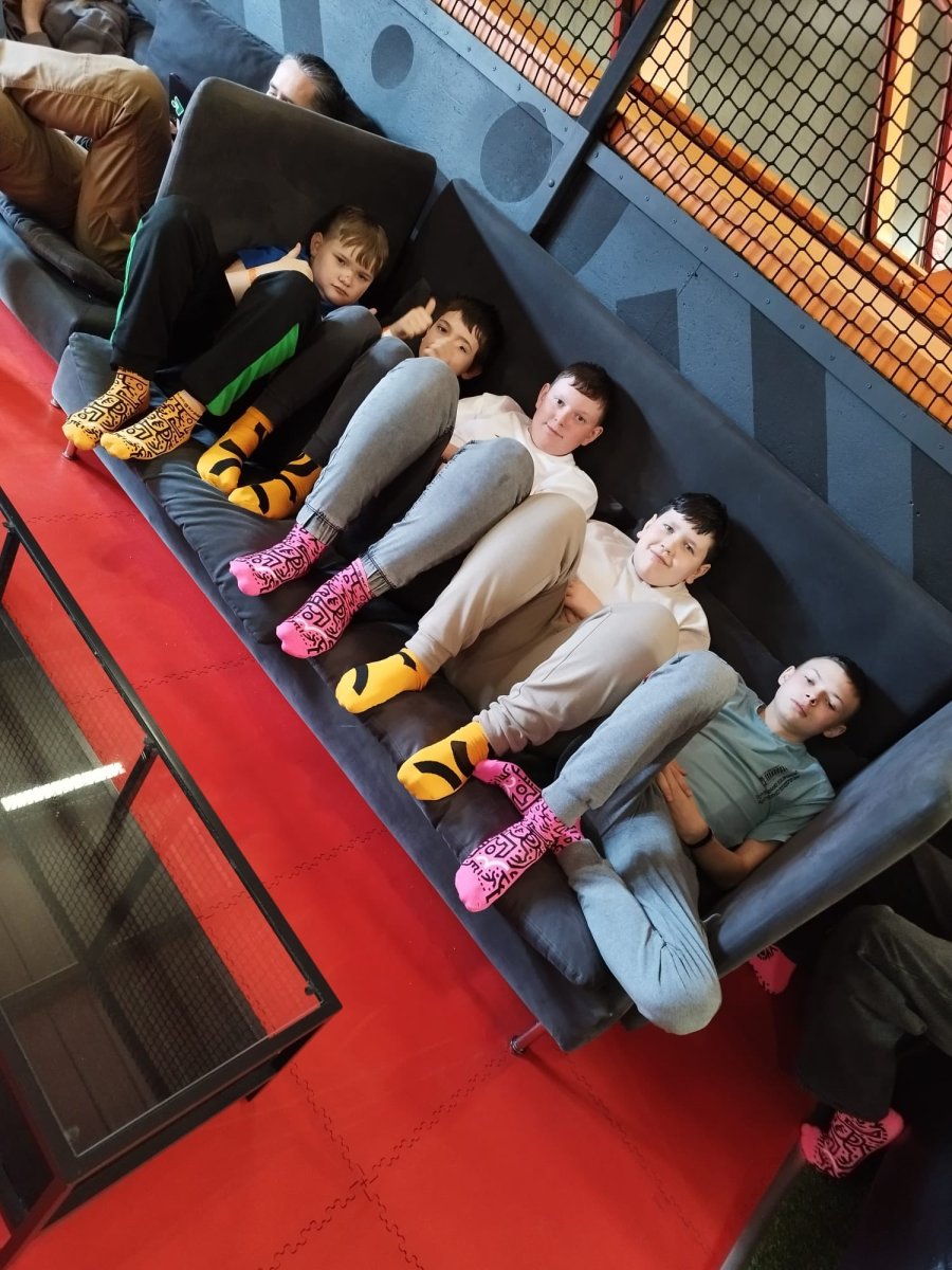 Po pysznym śniadaniu sprawnie uporaliśmy się z pakowaniem i porządkami, a następnie ruszyliśmy do warszawskiego parku trampolin-Hangar 646! 🤸‍♂️ Było mnóstwo skakania, akrobacji i śmiechu! 😄