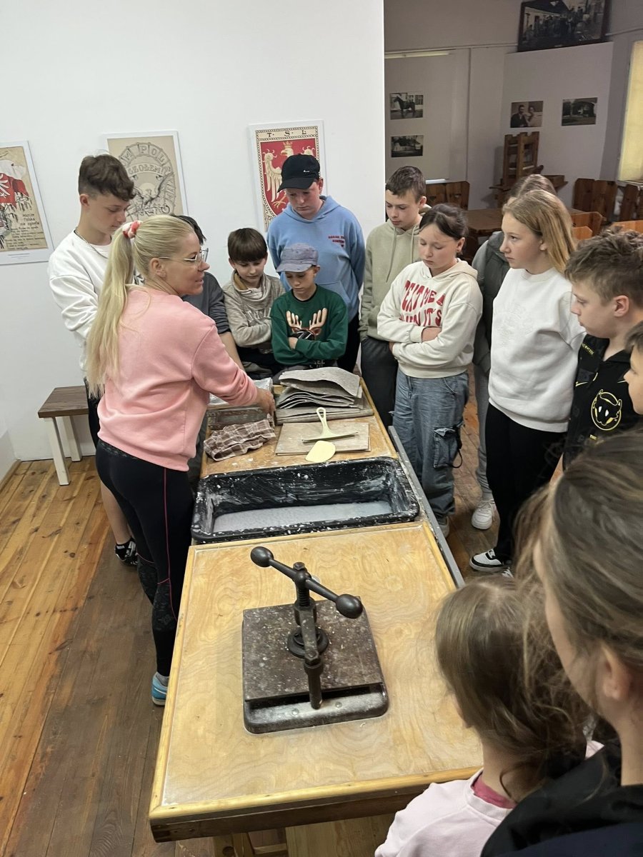 Nie zabrakło też kreatywnych zajęć! Wzięliśmy udział w warsztatach z tworzenia papieru, co było świetną zabawą i pozwoliło nam zrozumieć, jak kiedyś powstawały ważne dokumenty.
