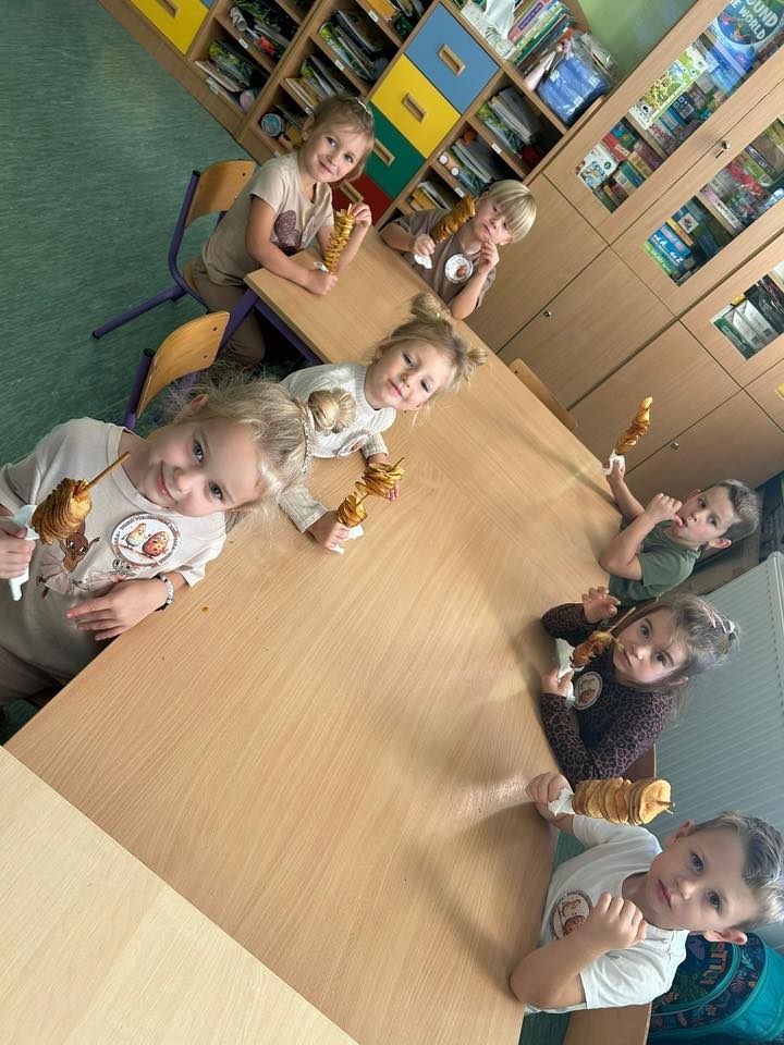 W grupie „Smerfy” obchodziliśmy dziś Dzień Pieczonego Ziemniaka. Dzieci poznały budowę ziemniaka – dowiedziały się, że ma skórkę, oczka i miąższ, a także poznały cykl jego rozwoju: od sadzenia bulwy, poprzez wzrost rośliny i kwitnienie, aż do jesiennych wykopków.