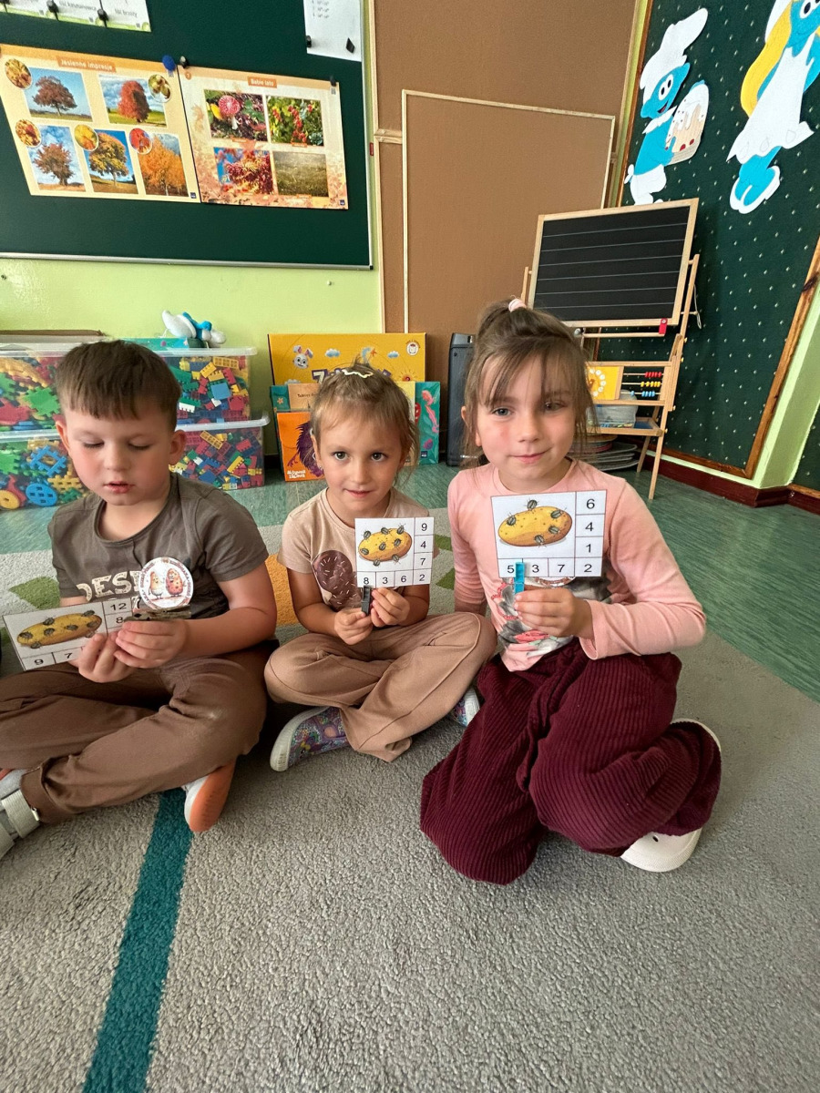 Podczas zajęć matematycznych dzieci rozwiązywały zadania w zabawie „Policz stonki” – liczyły owady, porównywały ich liczebność i odpowiadały na proste pytania matematyczne.