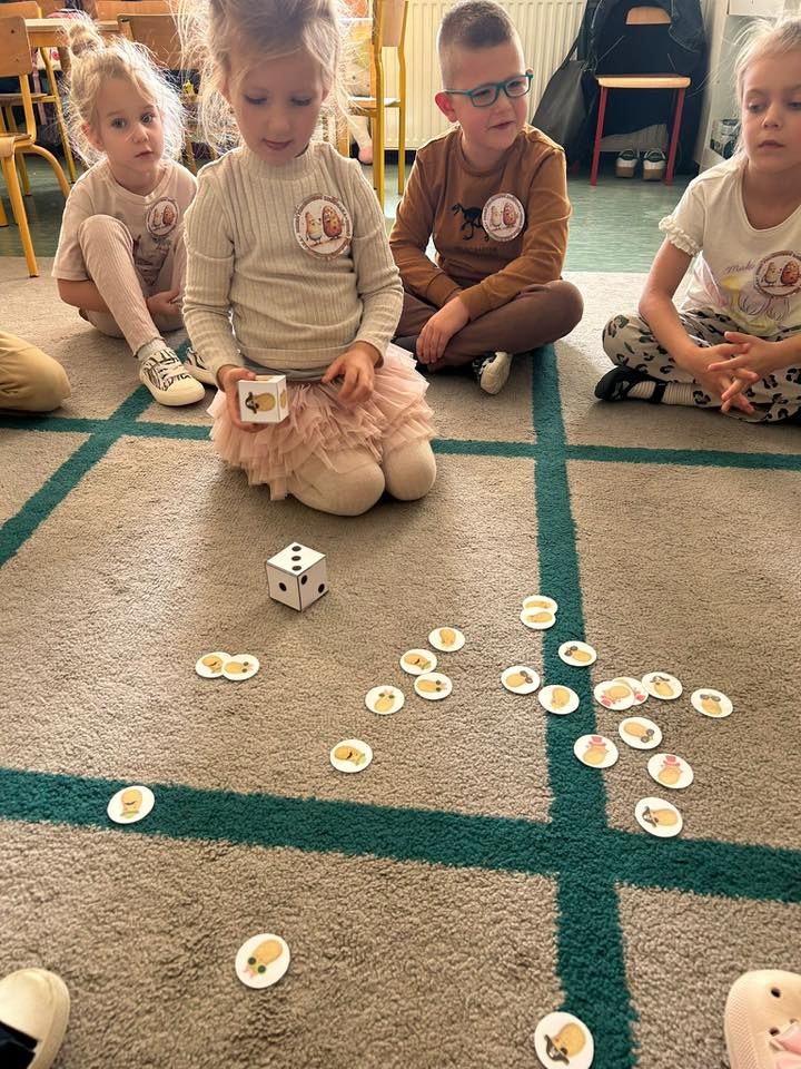 Podczas zajęć matematycznych dzieci rozwiązywały zadania w zabawie „Policz stonki” – liczyły owady, porównywały ich liczebność i odpowiadały na proste pytania matematyczne.