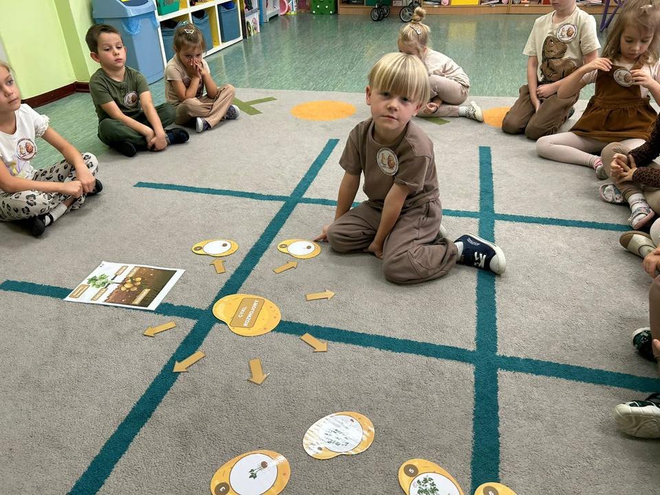 Podczas zajęć matematycznych dzieci rozwiązywały zadania w zabawie „Policz stonki” – liczyły owady, porównywały ich liczebność i odpowiadały na proste pytania matematyczne.