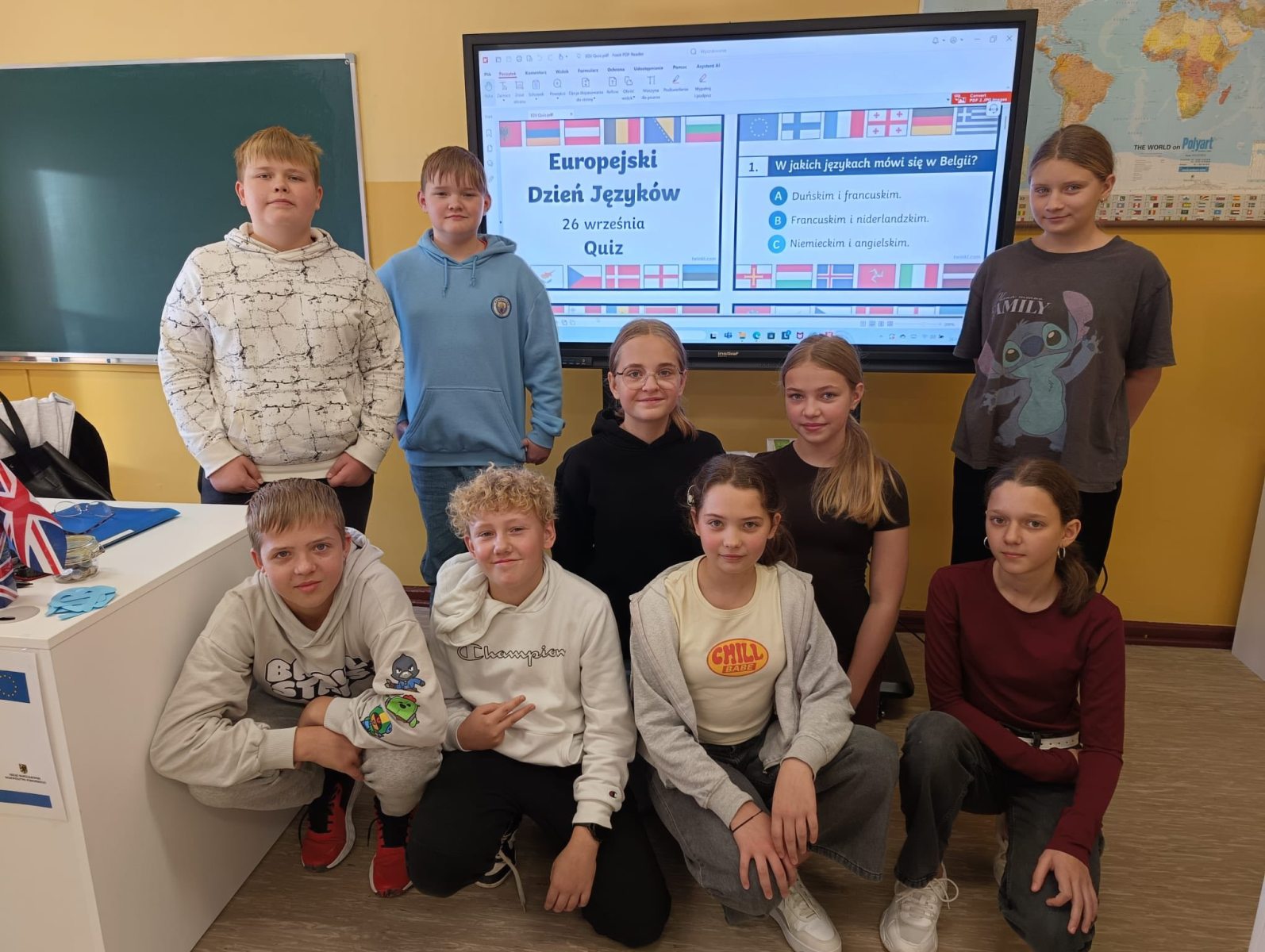 To wyjątkowe wydarzenie było okazją, by pokazać, jak ważna i ciekawa jest nauka języków obcych. Uczniowie wzięli udział w licznych aktywnościach – zarówno podczas lekcji języka angielskiego 🇬🇧 i niemieckiego 🇩🇪, jak i na przerwach.