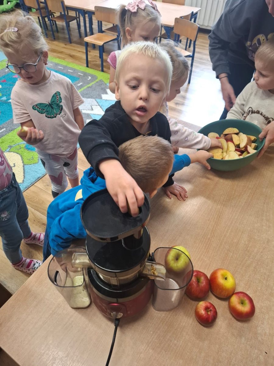 Dzień Jabłka przez admin | 29 września, 2025 0 komentarzy Dzień Jabłka w grupie Biedronek. Dzisiejszy dzień upłynął biedroneczkom pod znakiem zdrowia, smaku i świetnej zabawy. Dzieci miały okazję próbować jabłuszka, robić pyszny sok w sokowirówce oraz malowały jabłuszka z papierowych talerzyków. 555715264_1335350538591182_8534011089339872064_n Zdjęcie 4 z 29