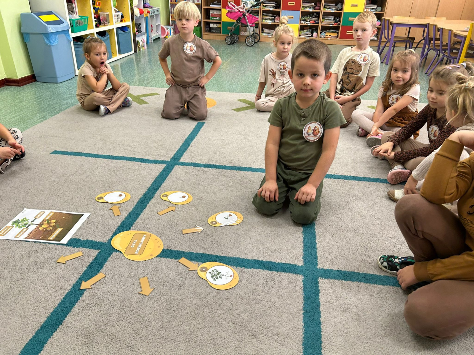 Podczas zajęć matematycznych dzieci rozwiązywały zadania w zabawie „Policz stonki” – liczyły owady, porównywały ich liczebność i odpowiadały na proste pytania matematyczne.