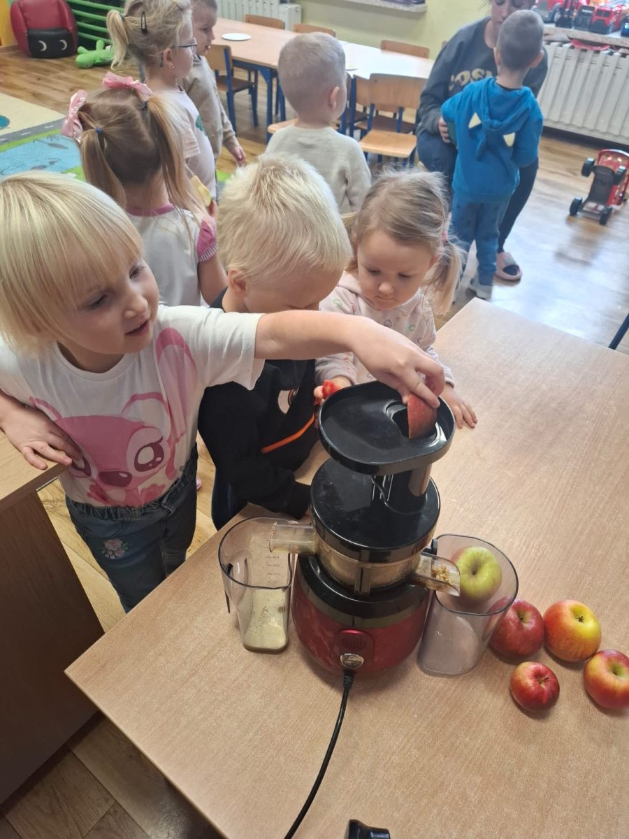 Dzień Jabłka przez admin | 29 września, 2025 0 komentarzy Dzień Jabłka w grupie Biedronek. Dzisiejszy dzień upłynął biedroneczkom pod znakiem zdrowia, smaku i świetnej zabawy. Dzieci miały okazję próbować jabłuszka, robić pyszny sok w sokowirówce oraz malowały jabłuszka z papierowych talerzyków. 556152295_1335350268591209_524424085969942156_n Zdjęcie 21 z 29