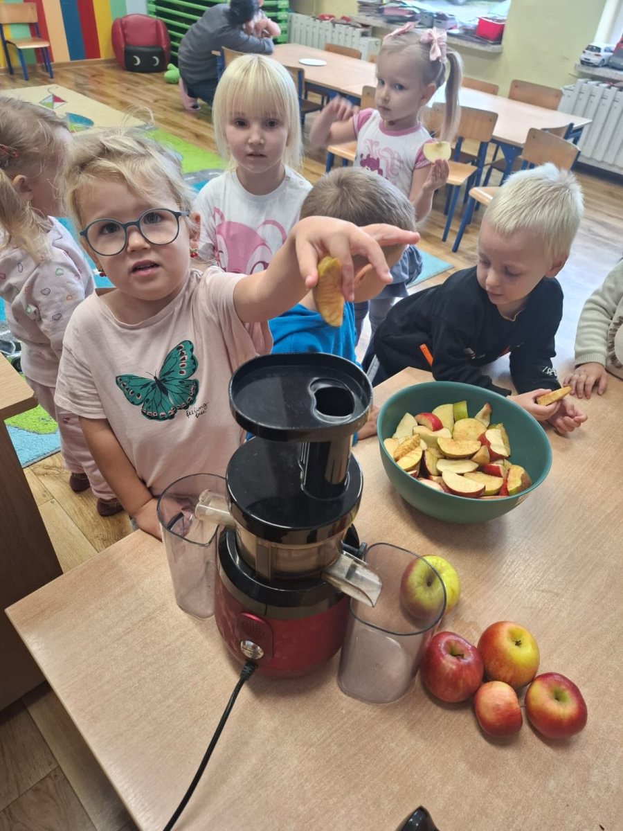 Dzień Jabłka przez admin | 29 września, 2025 0 komentarzy Dzień Jabłka w grupie Biedronek. Dzisiejszy dzień upłynął biedroneczkom pod znakiem zdrowia, smaku i świetnej zabawy. Dzieci miały okazję próbować jabłuszka, robić pyszny sok w sokowirówce oraz malowały jabłuszka z papierowych talerzyków. 556305717_1335350355257867_901604408388218709_n Zdjęcie 23 z 29