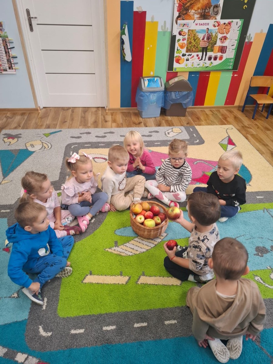 Dzień Jabłka przez admin | 29 września, 2025 0 komentarzy Dzień Jabłka w grupie Biedronek. Dzisiejszy dzień upłynął biedroneczkom pod znakiem zdrowia, smaku i świetnej zabawy. Dzieci miały okazję próbować jabłuszka, robić pyszny sok w sokowirówce oraz malowały jabłuszka z papierowych talerzyków. 556313656_1335351075257795_1051678628393030227_n Zdjęcie 24 z 29