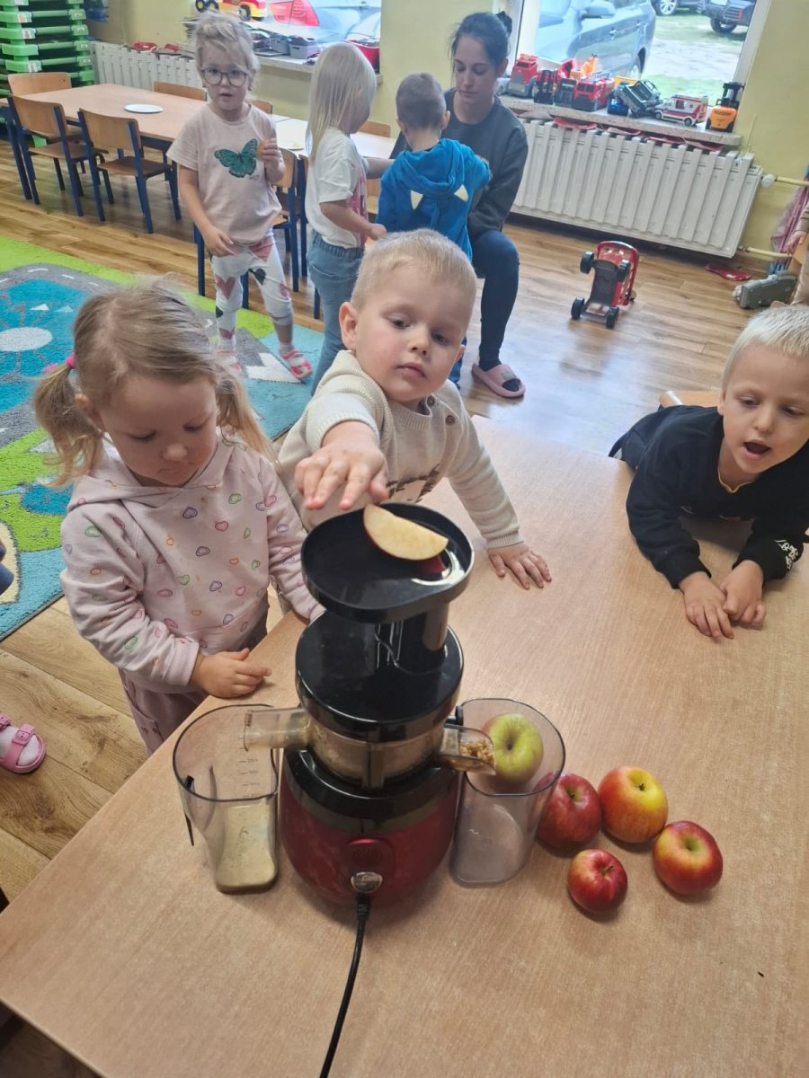 Dzień Jabłka przez admin | 29 września, 2025 0 komentarzy Dzień Jabłka w grupie Biedronek. Dzisiejszy dzień upłynął biedroneczkom pod znakiem zdrowia, smaku i świetnej zabawy. Dzieci miały okazję próbować jabłuszka, robić pyszny sok w sokowirówce oraz malowały jabłuszka z papierowych talerzyków. 557697197_1335350761924493_2963743694167034937_n Zdjęcie 29 z 29