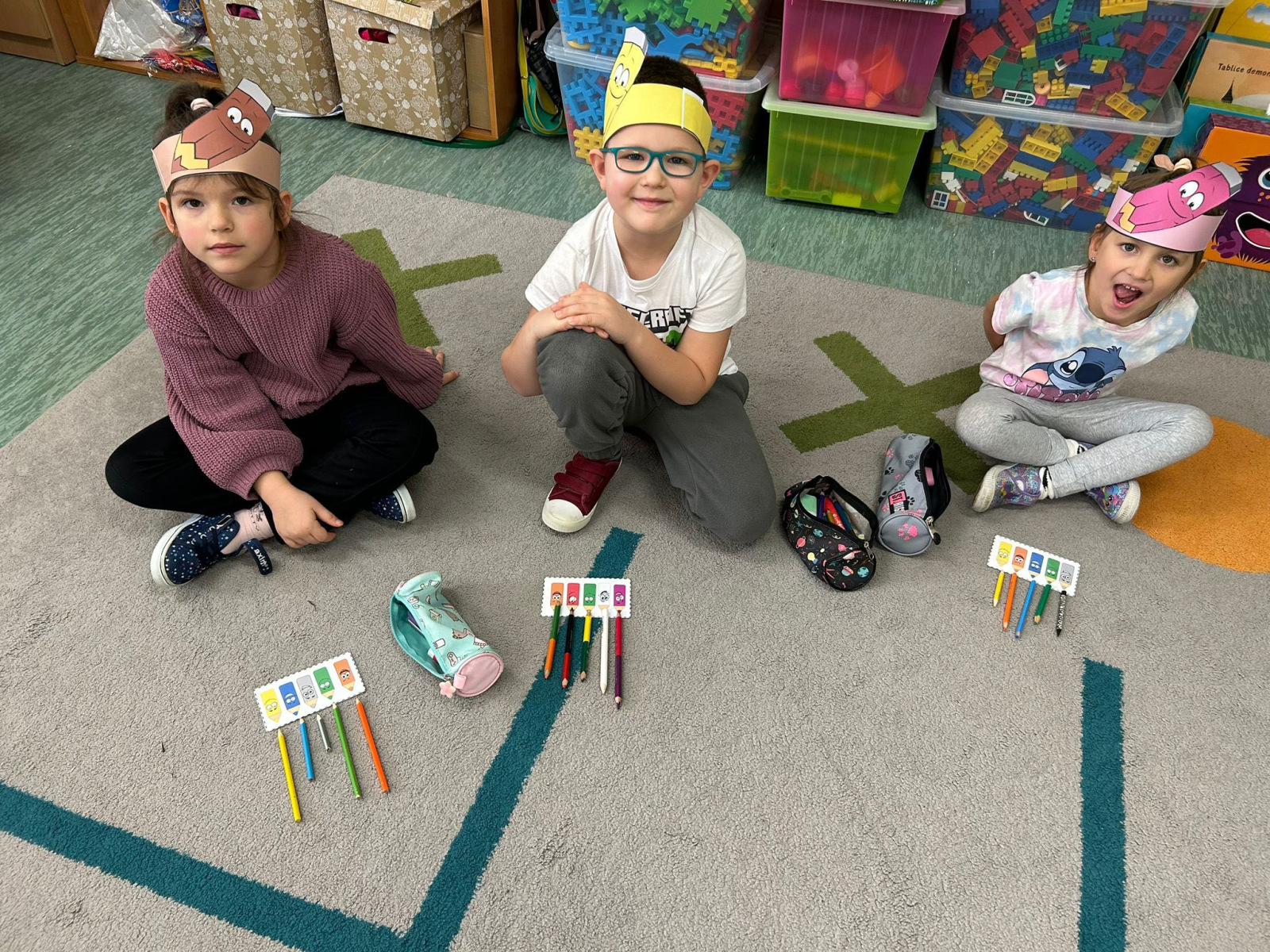 W części matematycznej dzieci układali rytmy z kredek oraz przeliczali kredki, porównując ich liczebność.