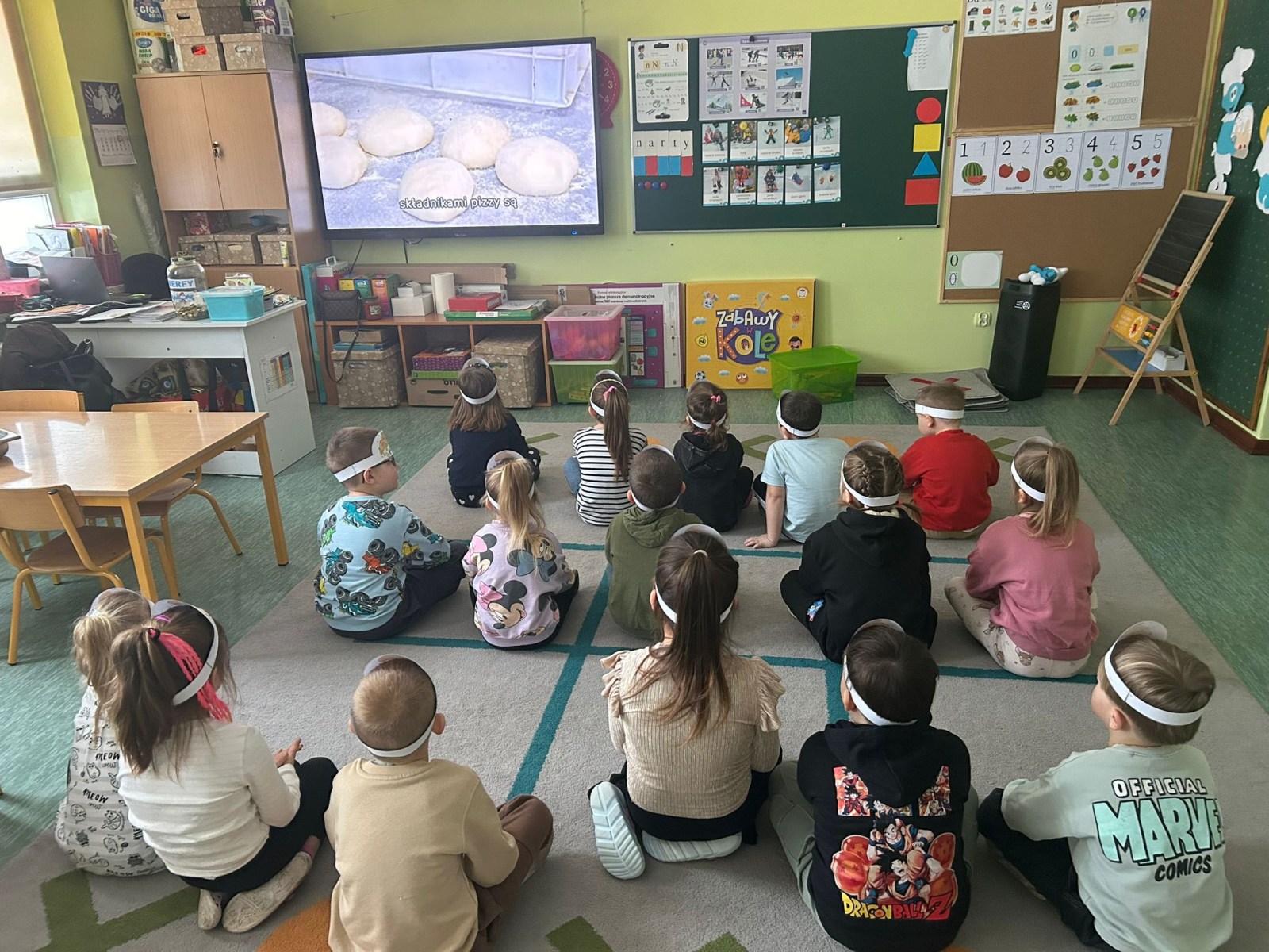Po upieczeniu pizzy Smerfy, jako młodsza grupa, z dumą poczęstowały uczniów klasy 1. Była to wspaniała okazja do integracji, nauki dzielenia się oraz budowania relacji między młodszymi i starszymi dziećmi.