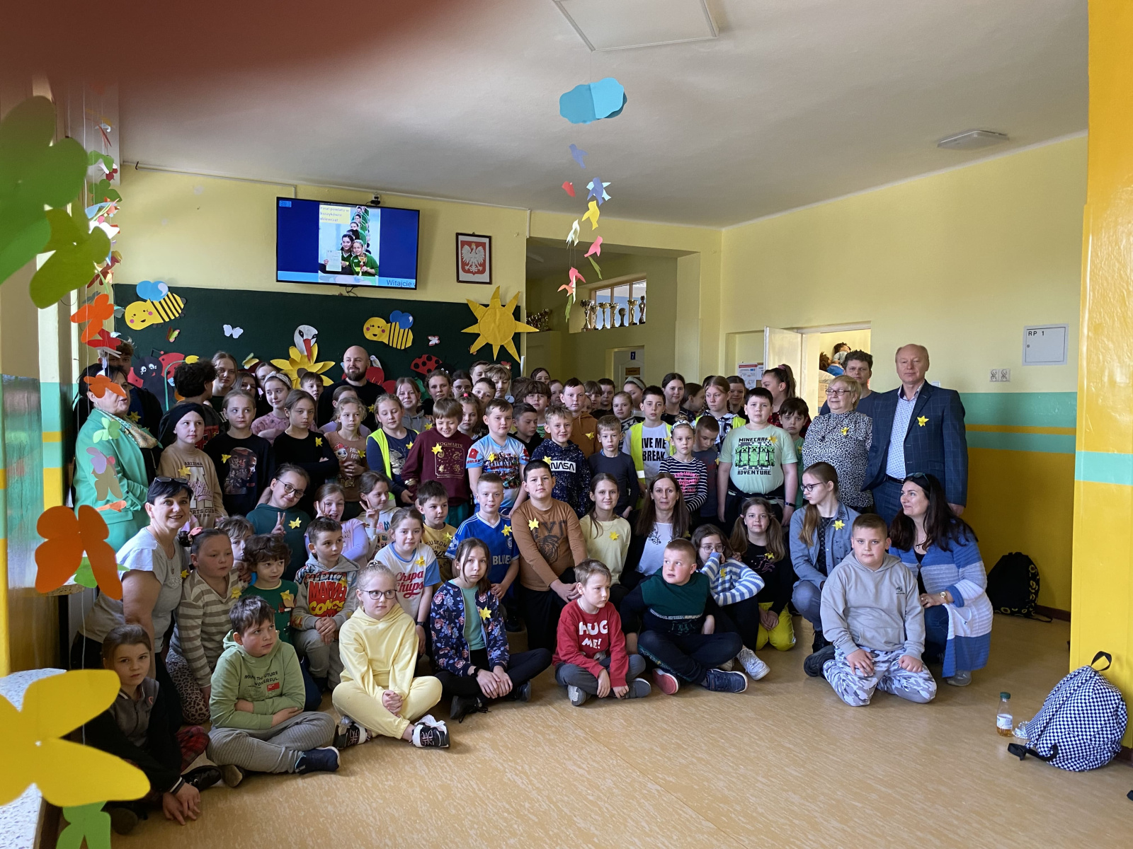 Pracownicy wraz z uczniami naszej szkoły postanowili uczcić rocznicę powstania pamiątkowymi zdjęciami z przypiętymi symbolicznie papierowymi żonkilami.